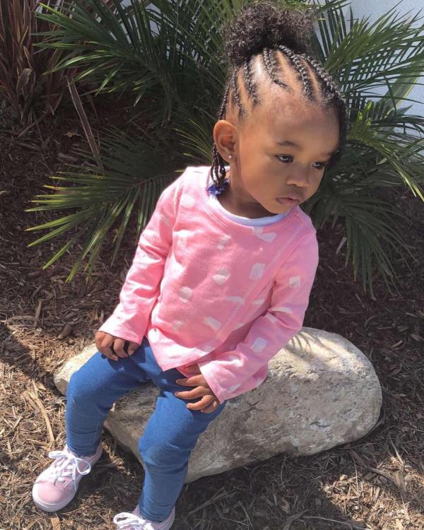 For those that wish to have their baby daughter wear cornrows, this can be a good hairstyle for you. You cornrow the crown in medium size braids with 2 strand twists in the back.
